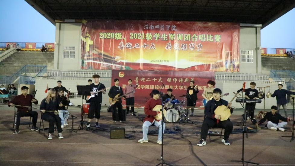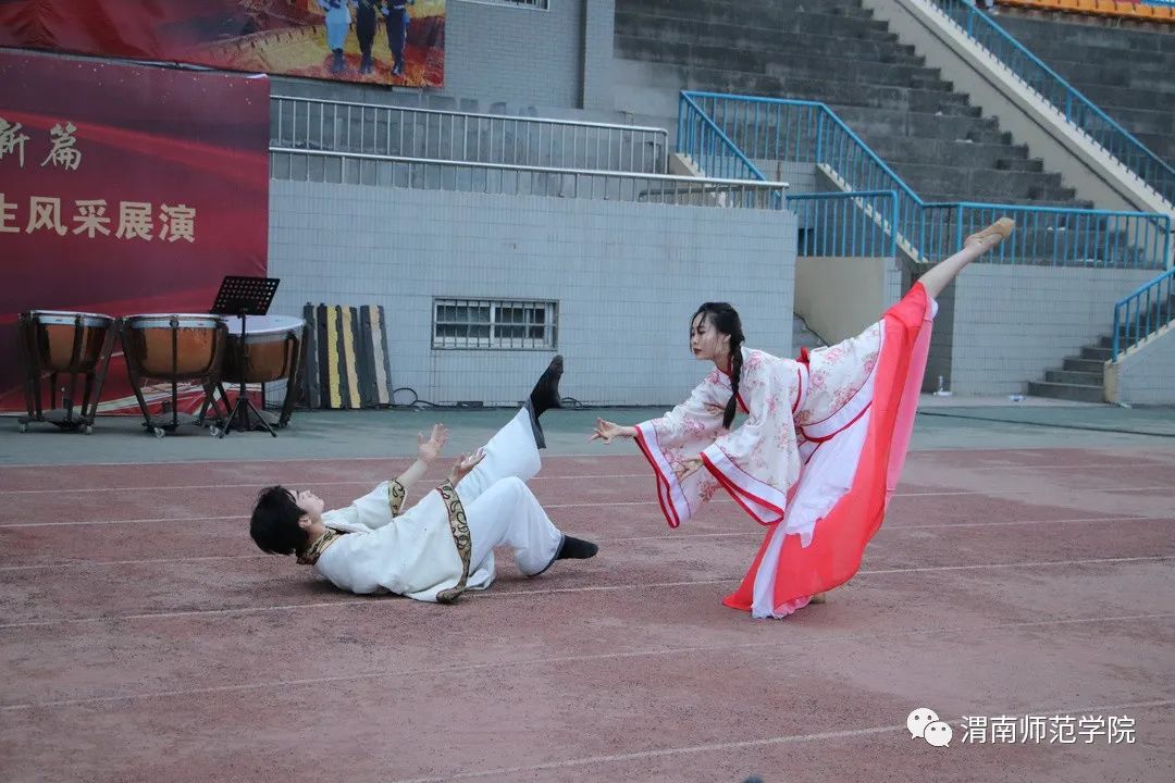 欢歌乐舞显风采。大学生风采展演带来一场场精彩的文艺表演,管弦乐团激情澎湃,老腔艺术团秦音苍劲,汉服协会舞姿轻盈,艺源吉他社弹唱欢快,……渭师学子以青春热情表达浓浓的爱校情意。