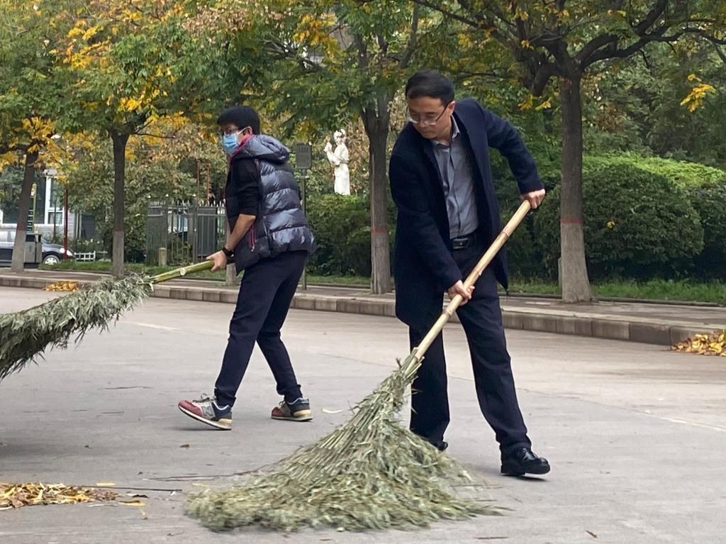 活动一开始,各学院劳动队伍齐聚卫生责任区域。全体干部、教师布排有经验、指导有方法。大家一切行动听指挥,责任分工明确、协作互助到位。同学们你捡我拾、边扫边收,热火朝天。整个校园环境很快就有了提升:路面干净,绿篱、绿化带整洁。