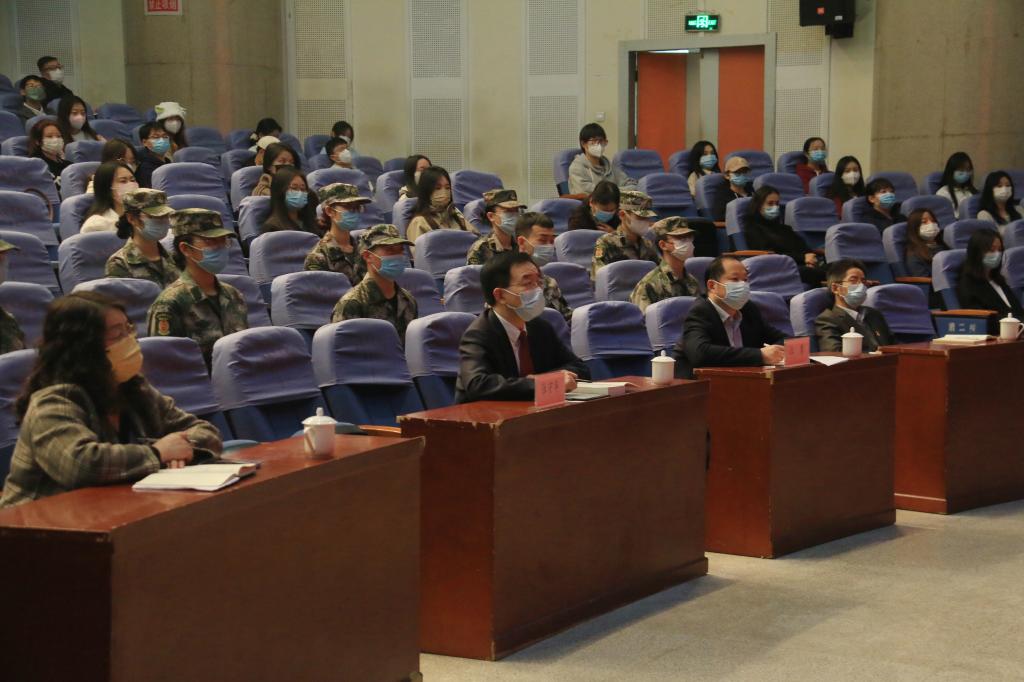 马克思主义学院党政领导和师生代表以及我校团学干部、退役士兵学生代表参加分享会。(通讯员 赵国峰 审核人 赵国峰)