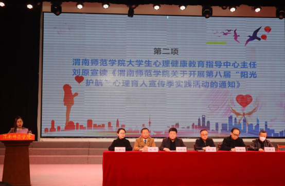 郑林科宣布渭南师范学院第八届“阳光护航”心理育人宣传季实践活动正式启动。