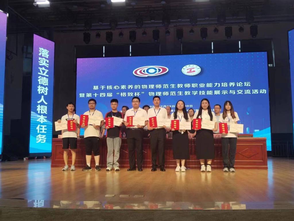 在我校物理与电气工程学院的高度重视与支持下,共选拔出13名学生参赛,分别参加5组教学技能展示活动和3组创新实验设计展示活动及1组教学论文展示活动。经过紧张激烈的角逐,我校选手表现优异,在教学技能展示活动中陈前、刘莹获一等奖、李伊彤、杨俊哲获二等奖、李筱茵获三等奖;在创新实验设计与自制教具展示活动中林昊、徐立、王昱文等团队分别获三等奖;在教学论文展示活动中郭智勇等获特等奖。