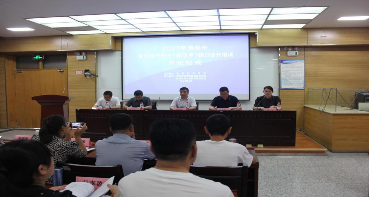 8月5日上午,渭南市乡村骨干校长(教学点)能力提升培训在我校逸夫楼科学讲堂开班。渭南市教育局党组成员副局长刘红兵,继续教育学院院长刘永勤,首席专家计算机学院院长杨方琦等出席了开班仪式。会议由渭南市教育局教师工作科科长庞文红主持。