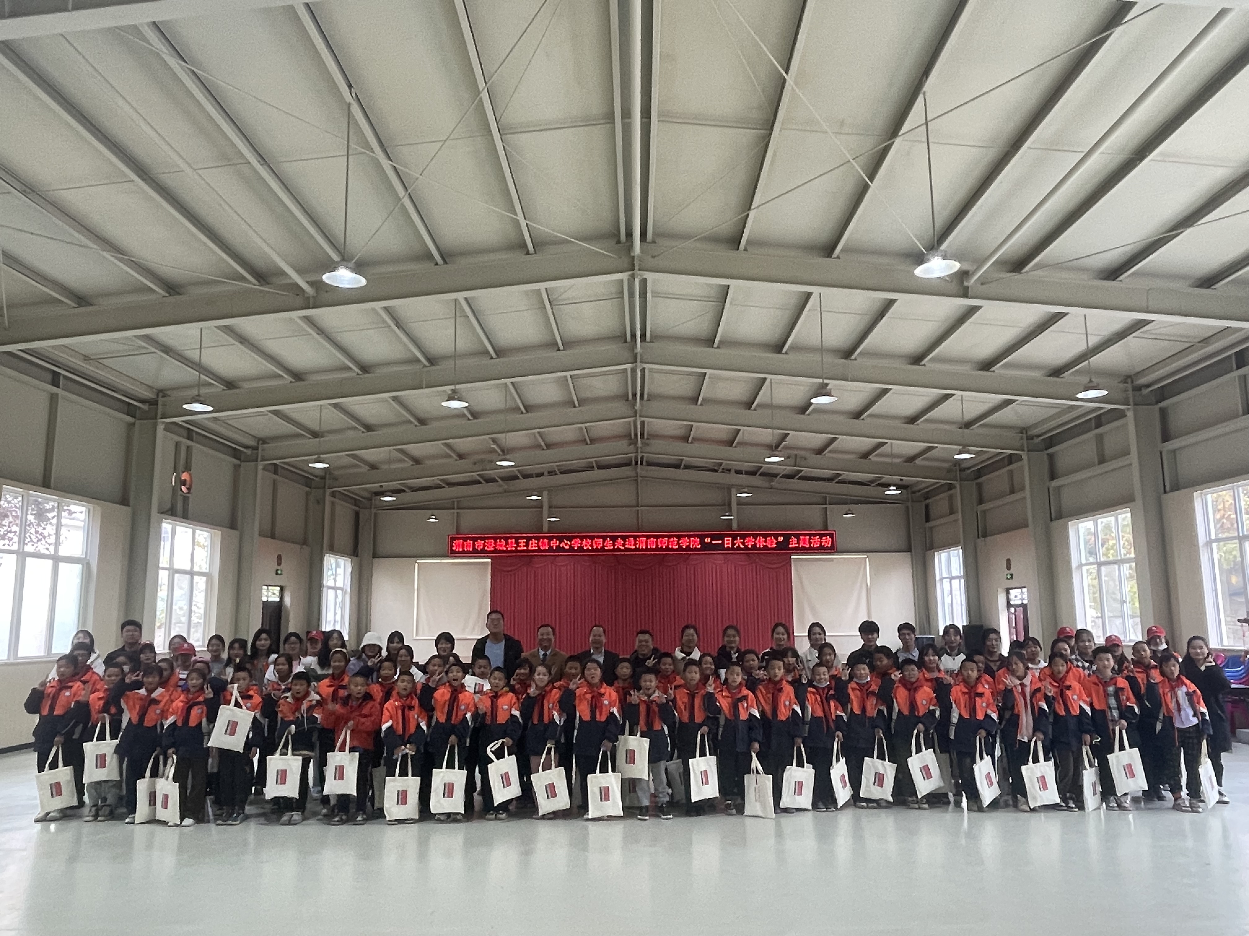 11月9日,我校“双百工程”结对帮扶县、2023年暑期“三下乡”大学生社会实践所在地——澄城县王庄镇中心学校的56名师生在我校校友、校长姚文斌的带领下来校开展“一日大学体验”主题活动。学校党委书记卓宇、党委副书记汪勇在厚德楼前与来校师生亲切交谈,表示慰问并合影留念。