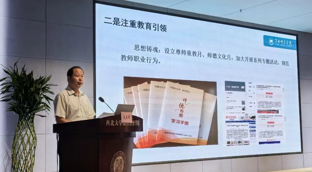 在培训会上,我校和陕西师范大学、西北大学等5所高校作工作交流。党委副书记汪勇代表学校,在培训班结业式上作学校特色做法交流分享。