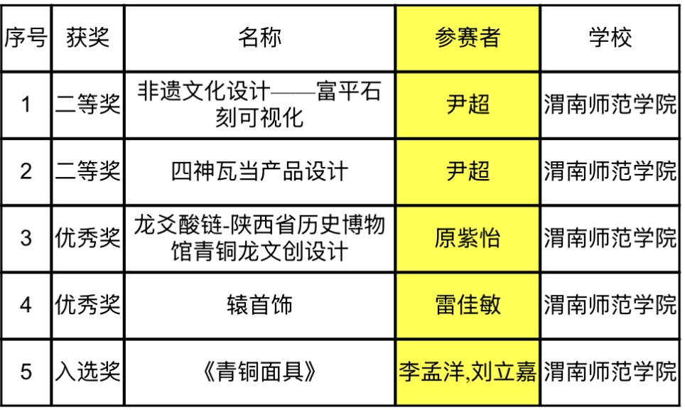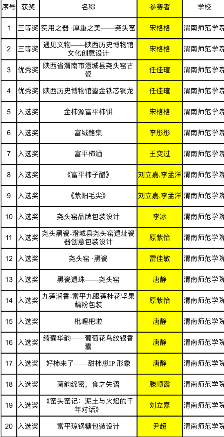 在陕西省县域文化创意产品设计赛道中2件作品荣获二等奖,2件作品荣获优秀奖,1件作品荣获入选奖。