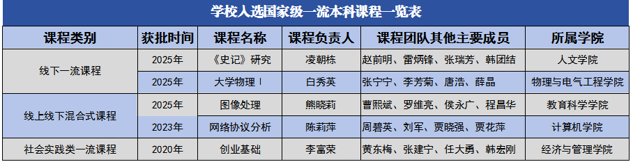 近日,教育部发布了《关于第三批国家级一流本科课程认定结果的通知》,我校3门课程获评国家级一流本科课程。其中,《<史记>研究》《大学物理Ⅰ》2门课程获批线下一流课程,《图像处理》课程获批线上线下混合式一流课程。至此,学校共获批国家级一流本科课程5门,获批课程门数省内同类院校最多。