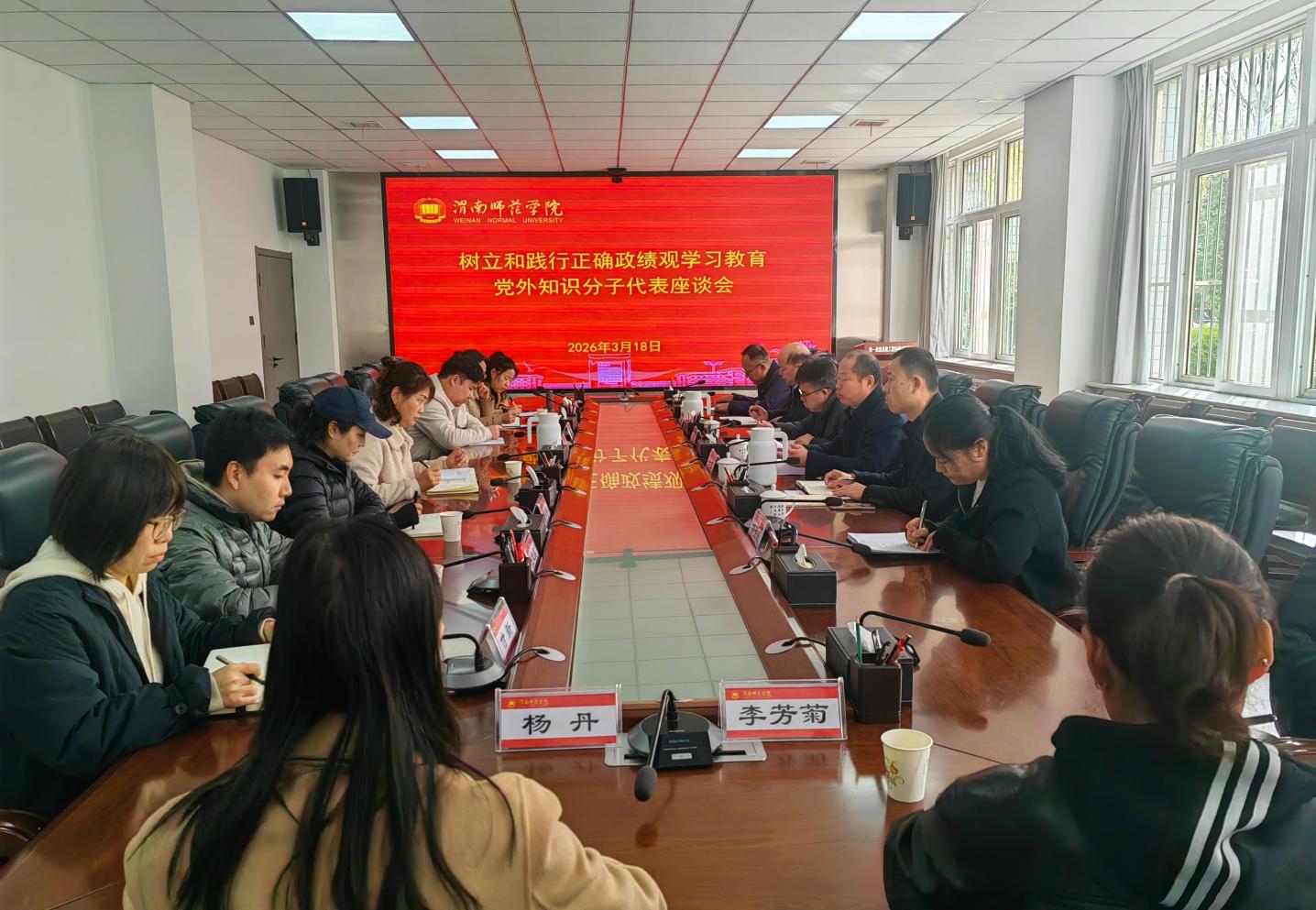 学校树立和践行正确政绩观学习教育工作专班各工作组、部分成员及党外知识分子代表参加座谈会。(通讯员 刘婉婷 审核人 张勤恳)