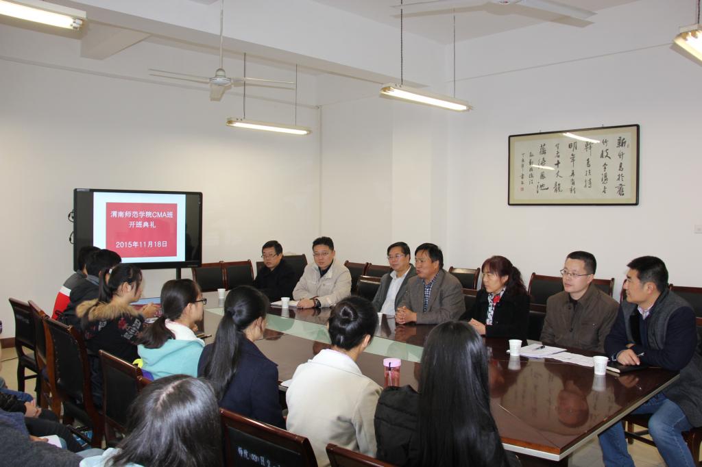 11月18日上午,我校开办的美国注册管理会计师(CMA)班在博识楼1518商学院会议室举行开班典礼。副院长李海龙出席并讲话。继续教育学院院长(就业培训中心主任)史天胜、教务处处长王菊霞、商学院院长李尧龙、北京国泰教育集团院校合作事业部总监刘志国等参加开班典礼,并各自就本部门围绕该班开展的相关工作作了说明。开班典礼由继续教育学院副院长(就业培训中心副主任)周德锋主持。
