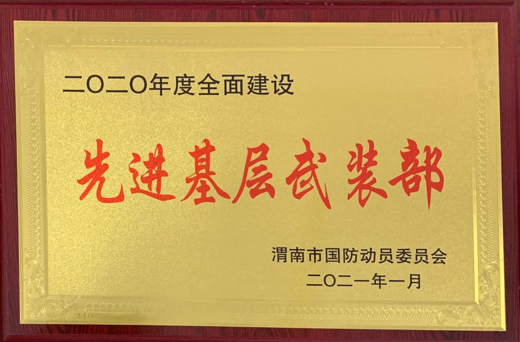 近日,在渭南市2020年武装工作全面建设考核评比中,我校人民武装部被渭南市国防动员委员会评为“先进基层武装部”。