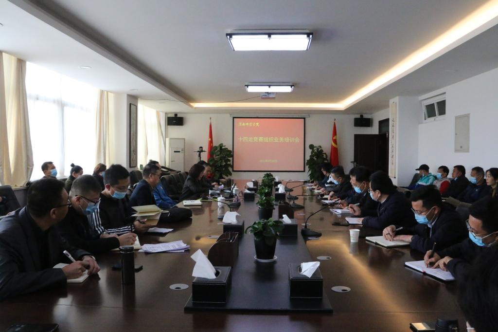 3月30日上午,十四运会篮球项目竞委会(渭南赛区)邀请陕西省篮协副主席、十四运篮球项目联络官、国际篮联技术代表周江安,对竞委会11个职能处室,特别是竞赛组织处的全体核心工作人员进行了业务指导和培训。