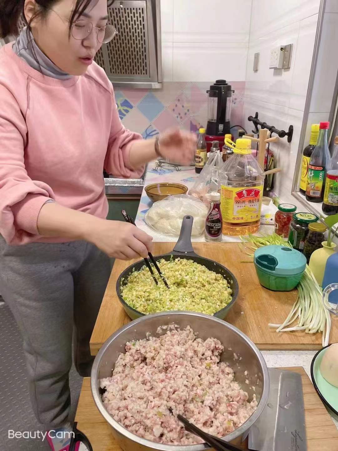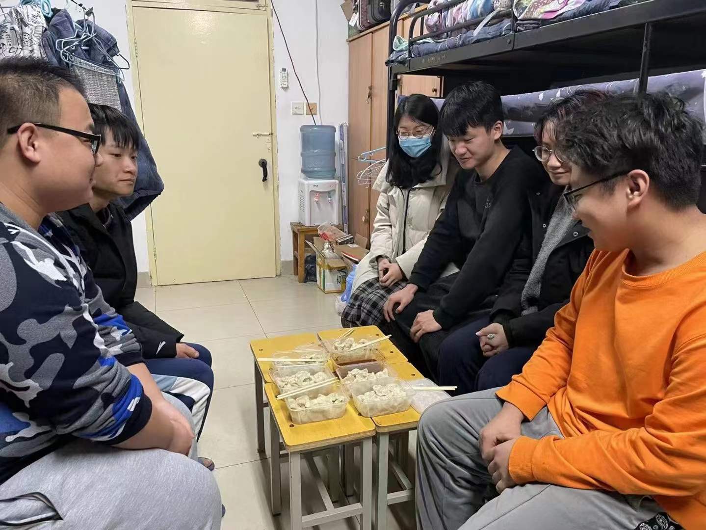 学院赵维、李芳菊两名志愿者老师在听闻有学生生病后,主动前往菜市场购买新鲜食材,亲自和面、调馅、擀皮,用自己的拿手花样包出一个个皮薄馅足、精致营养的饺子。晚6时许,两位老师端着热腾腾、香喷喷的饺子来到宿舍,关切询问学生豆新刚身体恢复情况、持续时间,鼓励他安心学习、科学防控。同时送来了防疫物资和生活物资,带给学生满满的关怀和深深的情意。豆新刚同学说:吃着味道鲜美、热气腾腾的饺子,像是感受到了家的温暖!
