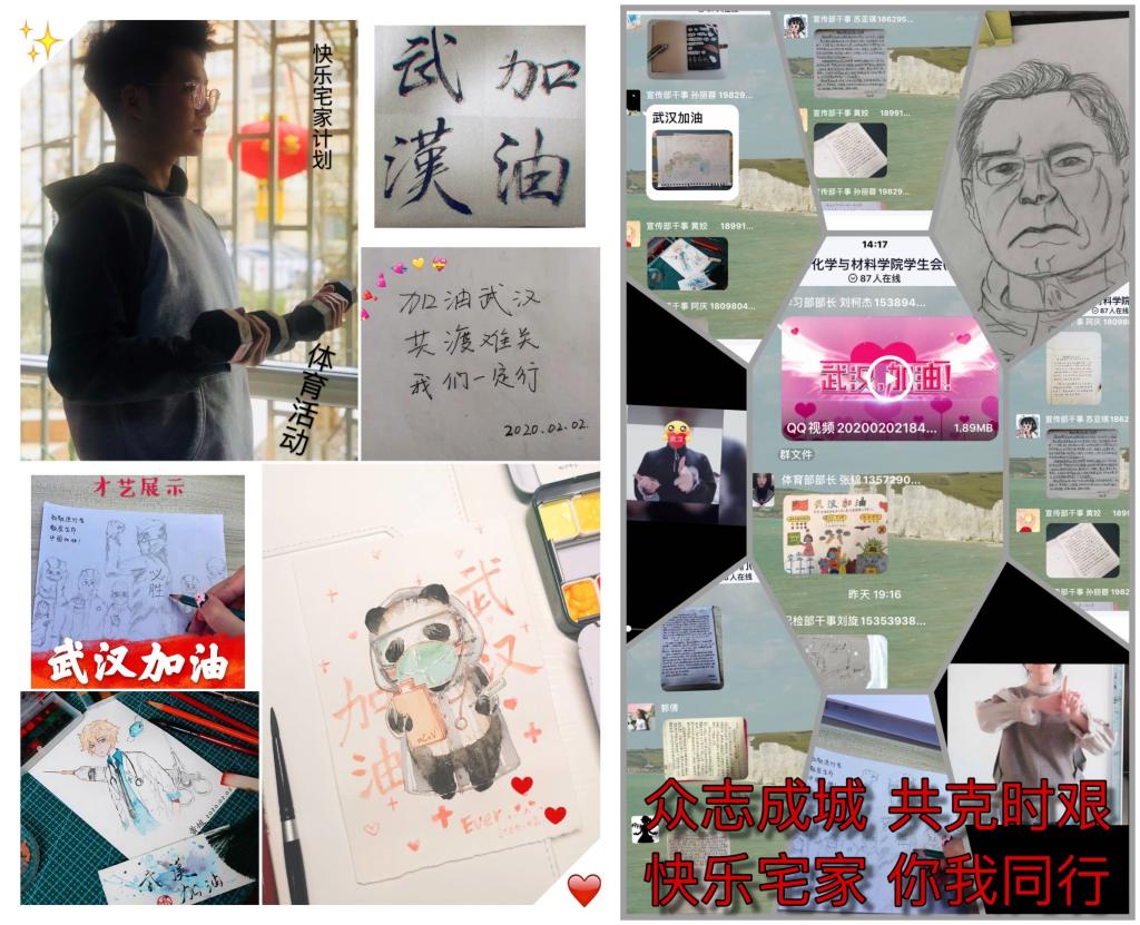 活动方案一经在班级群和微信公众平台推出,就受到了全院学生及学生家长的积极响应!班级里的党员和班干部能够发挥带头作用,主动带头完成读书及健身打卡。特色活动更是为学生们提供了一个展示才艺的平台。在“为武汉加油”主题活动中,同学们有的用画笔,有的用视频,有的用歌声表达了对武汉的支持和对国家的信心。学生家长们通过家长微信群向辅导员老师表达了对学院的感谢。2019级能化班学生家长表示,他们非常支持孩子参加学院的宅家计划,也愿意和孩子一起,用实际行动为武汉加油!为中国加油!(通讯员 刘原)