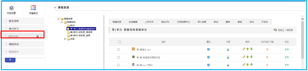课程单元设计完成后,依次准备相关资源、录制视频,上传至优慕课平台,并以“学习单元”或“播客单元”方式引用课程资源,对课程资源重新进行组织,以单元任务方式布置给学生,让学生学习。