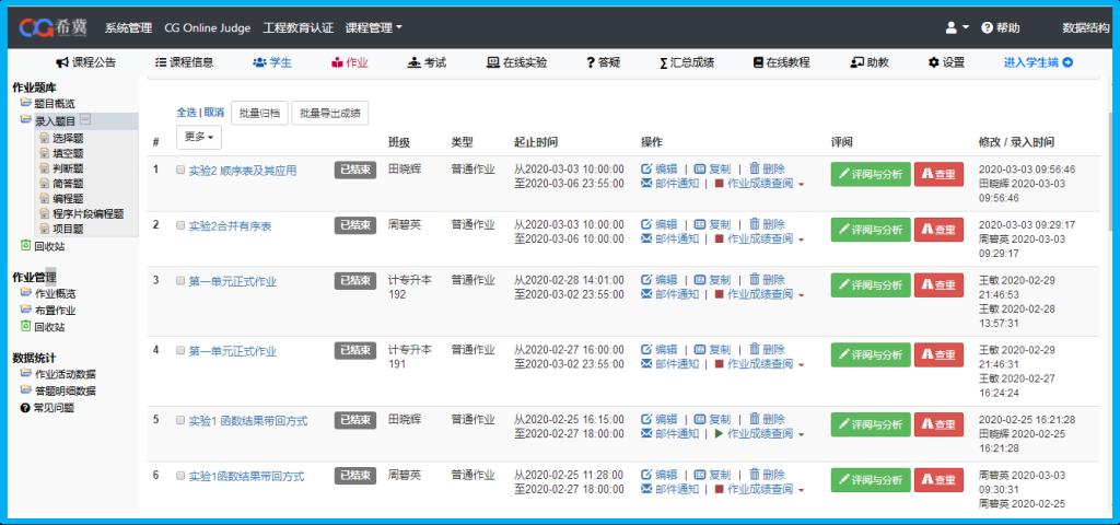 第5步:教师端查看提交结果并进行实验最终评阅: