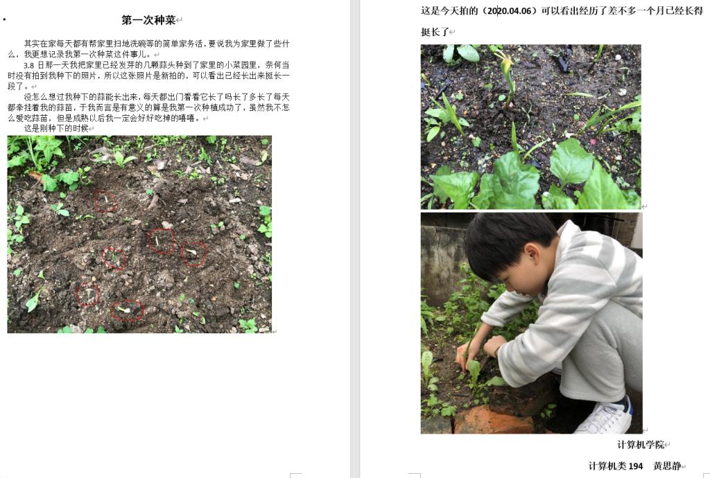 “劳动最光荣,这是老一辈人最常说的话,我深信不疑,每当看到习近平总书记和他的团队一起种树的身影和实地考察的场景,我总能想起这句话。”“技多不压身。寒假中体验了生活,得到了厨艺的大提升,更在劳动中得到了快乐。”“这次劳动让我更清醒地认识到在以后的学习中要脚踏实地,严格要求自己,不可眼高手低,糊弄了事。这次劳动所体验到的不仅只是身体上的酸痛,更是精神上的愉悦。”——这些朴实真挚的话语是学生们在相互分享的劳动报告中亲笔写下的。学生们表示,劳动使自己体会到生活的不易,也感受到作为家庭一员所担当的那份责任。尽管只是烧一顿饭、拖一次地、亦或锄一次苗,但生活恰于这些小事之中充满意义。