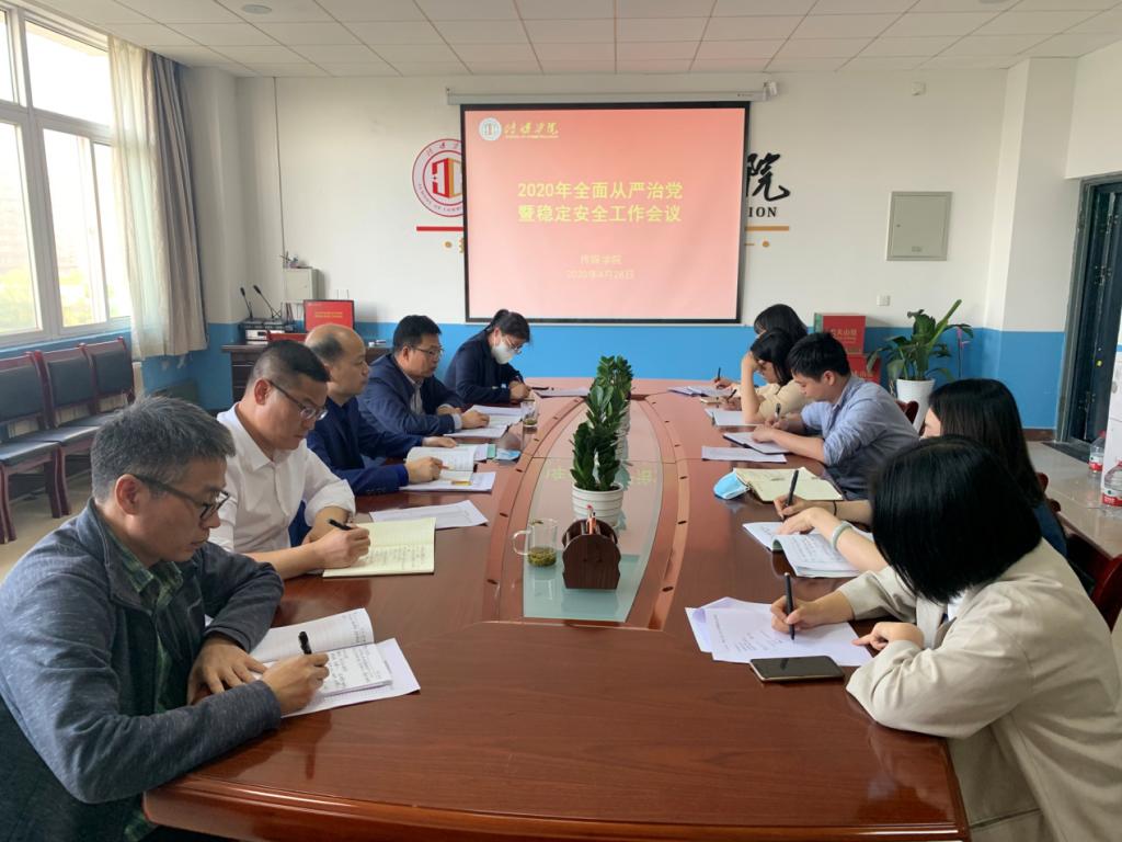 会上,党总支副书记、院长曹熙斌传达了全省教育系统2020年全面从严治党暨稳定安全工作视频会议以及学校2020年全面从严治党暨稳定安全工作会议精神,对前一阶段学院师生旅居史及每日健康打卡存在的问题进行了通报。党总支副书记刘永勤总结了学生疫情防控及信息报送工作的具体作法,针对毕业年级出现的打卡不及时等问题进行了深入分析,就开学前的学生每日健康及信息汇总报送作了进一步的安排。