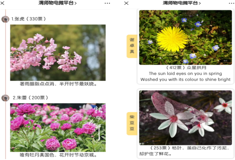 为丰富师生的课余生活,缓解疫情期间的焦虑心情。4月14日至4月25日,物理与电气工程学院组织开展了“2020我眼中的春天”主题摄影大赛。此次大赛顺利举办,得到了全院师生积极响应,大家纷纷拿出自己用镜头捕捉到的春日之景参与到比赛中来。