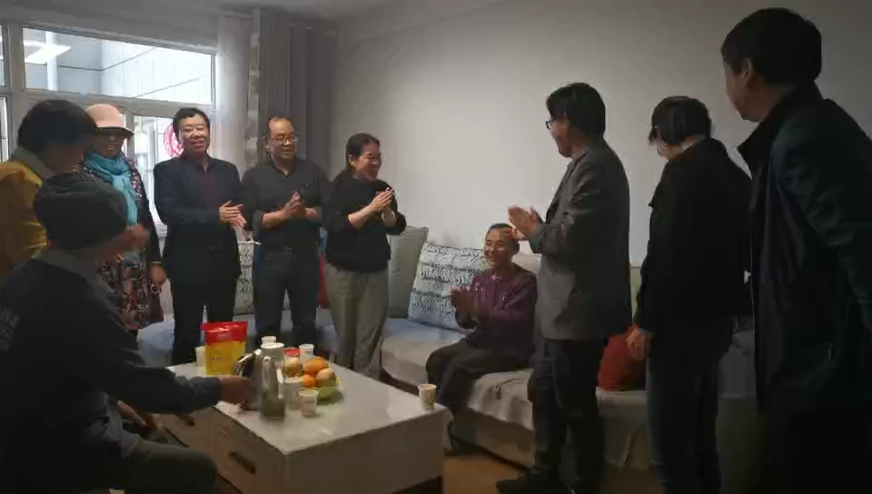 在党员史秀超博士家中,慰问人员得知当日恰逢职工家属70岁寿诞,一起为老人献上生日祝福歌曲,恭祝老人生日快乐,健康长寿。
