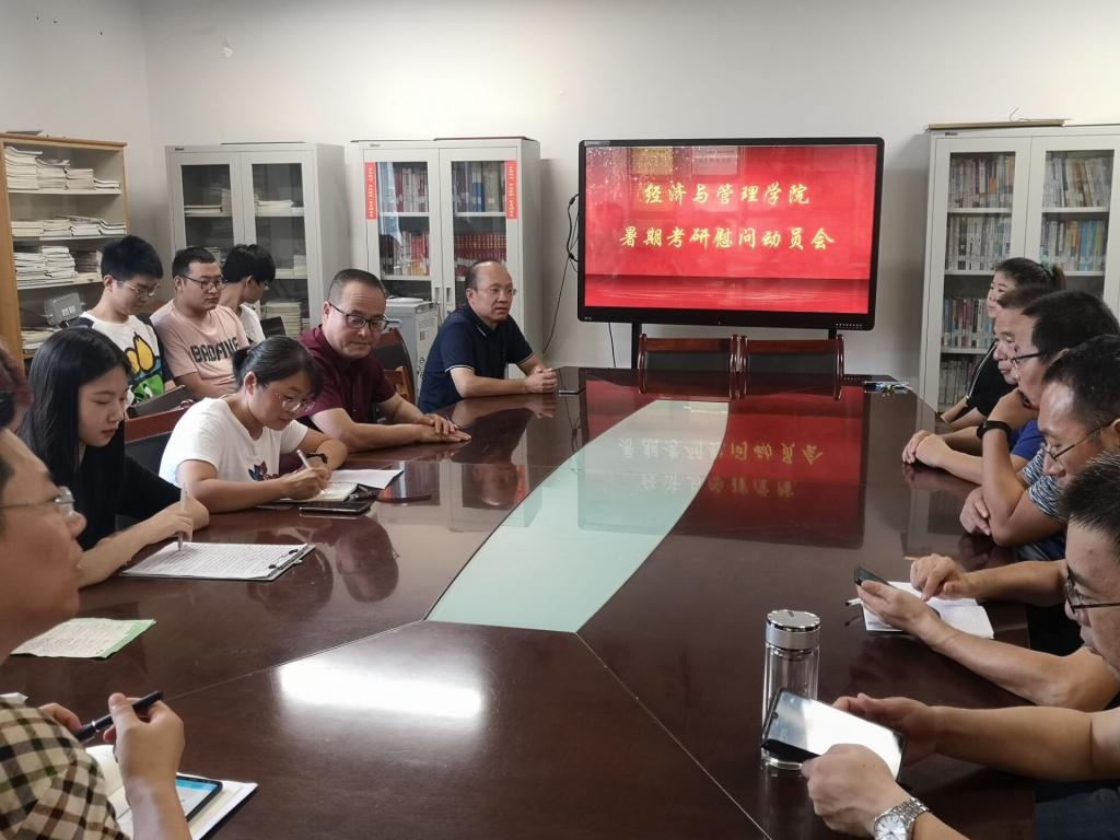 暑期留校备战考研学生的学习和生活始终牵动着经济与管理学院领导、老师们的心,为全面做好常态化疫情防控和暑期留校学生教育管理工作,进一步增强学生考研信心、助推考研梦想,8月6日上午,经济与管理学院召开2020年暑期留校考研学生慰问座谈会。学院党总支书记魏光民、院长李富荣、外国语学院马进胜老师、数学与统计学院张永红老师等出席会议,会议由副院长石党英主持。