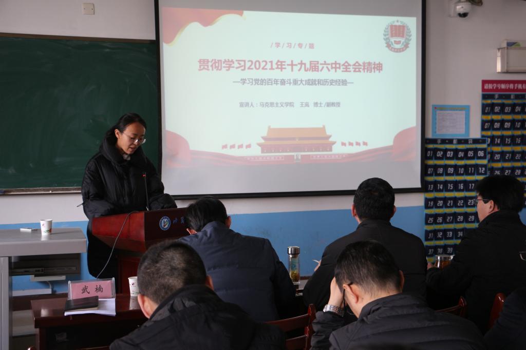 王岚从党的十九届六中全会会议介绍、党的百年奋斗的重大成就、党的百年奋斗的历史经验、以及不忘初心实现第二个百年奋斗目标的新的赶考之路四个方面,详细阐释和解读了十九届六中全会精神。整个报告内容主题鲜明、主线明确、重点突出、脉络清晰、逻辑严谨、内容丰富,既是一次生动的学术讲座,也是一次精彩的导学报告,体现了学术性、思想性、实践性的统一,使我们对全会的重大意义、丰富内涵、核心要义、实践要求有了更加深刻的认识和理解。