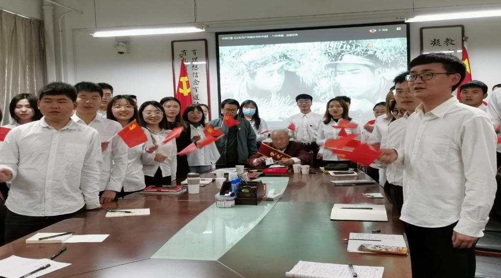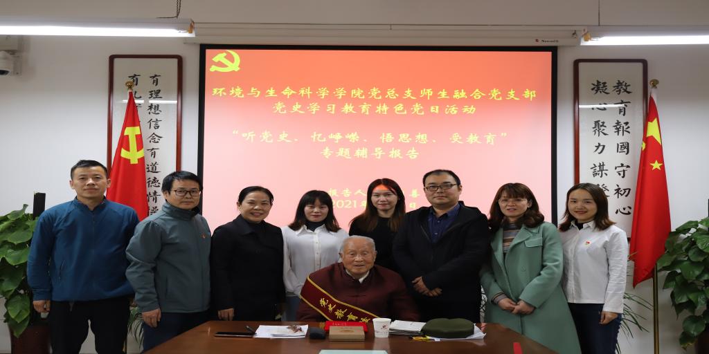 3月31日,环境与生命科学学院党总支组织召开“听党史、忆峥嵘、悟思想、受教育”专题报告会,特邀校内退休老教师,现有89岁高龄、67年党龄的抗美援朝老英雄傅自善同志为师生党员讲革命故事,学院聘任傅自善同志为环境与生命科学学院党史学习教育“校内辅导员”,并通过一同唱红歌、默哀革命烈士、重温入党誓词、阅览珍藏的历史资料等活动与老党员进行近距离沟通。