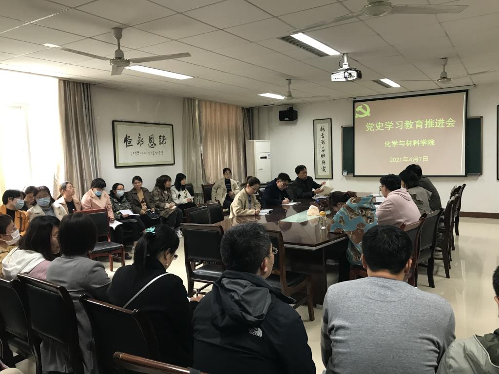 4月7日,化学与材料学院党总支于召开以“深化党史教育,厚植爱国情怀”为主题的党史学习教育推进大会。