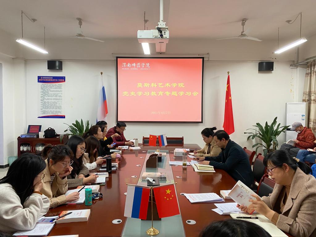4月7日下午,莫斯科艺术学院党总支围绕“深刻铭记中国共产党百年奋斗的光辉历程”召开党史专题学习会,学院全体教职工参会,会议由党总支书记孟波主持。