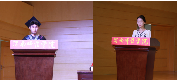 材料化学191班王晨璐同学作为优秀毕业生代表发言,他回顾了自己四年的青春记忆,并代表学院全体毕业生真诚感谢学院的悉心培养和老师们的倾囊相授。表示要坚定不移听党话、跟党走,用化材青年的责任与担当为社会贡献自己的力量。化本202班刘渝涵同学作为在校生代表发言,她向圆满完成学业的学长学姐们表示衷心地祝贺,对学长学姐们一直以来给予的关心和帮助表示衷心的感谢,并表示作为下一届毕业生有信心以更加优异的成绩,不负时代,不负韶华,不负母校培养,将用自己的实际行动为母校增光、为人生添彩、为国家和社会贡献青春力量!