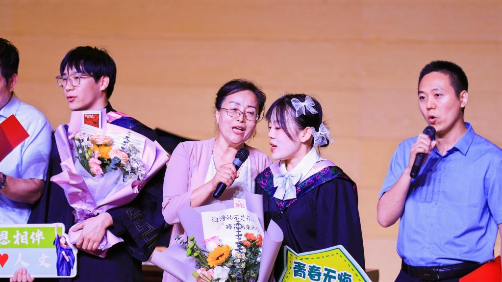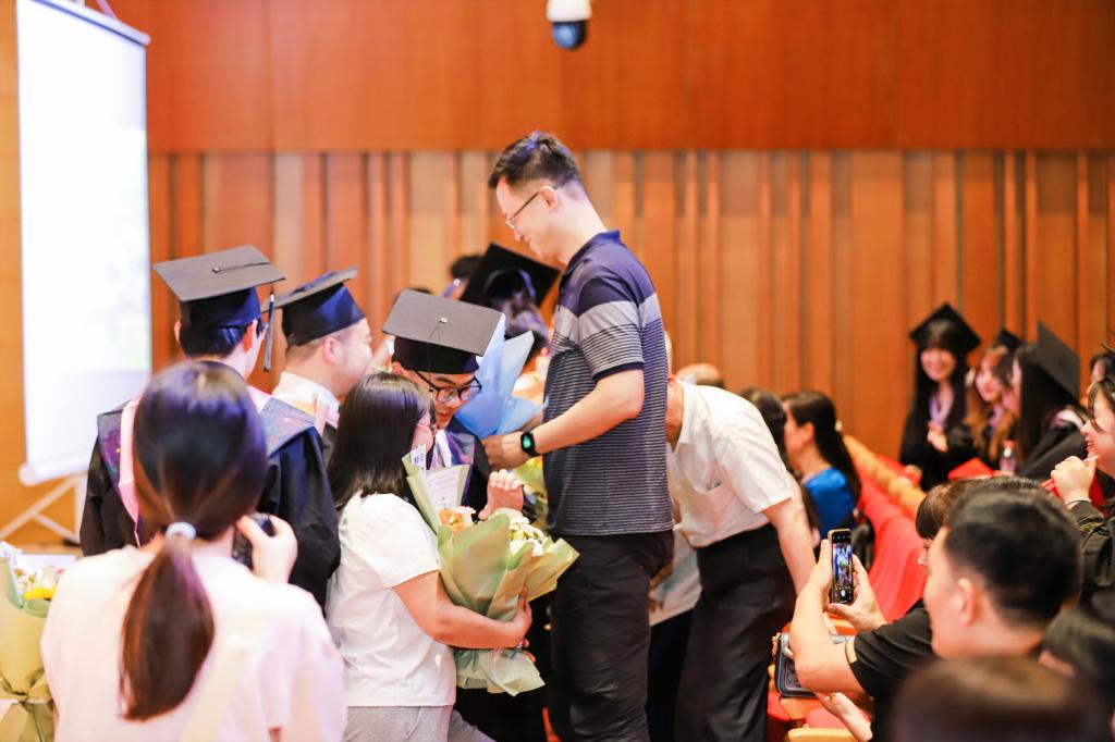 毕业生代表向毕业班辅导员献花,向一直以来无私奉献的“最美护花使者”表达了感恩与不舍之情。