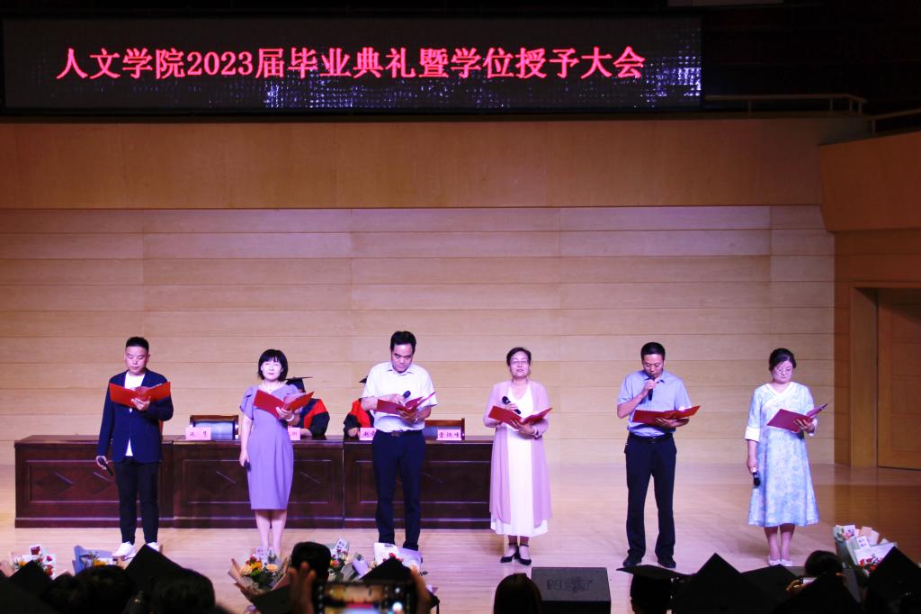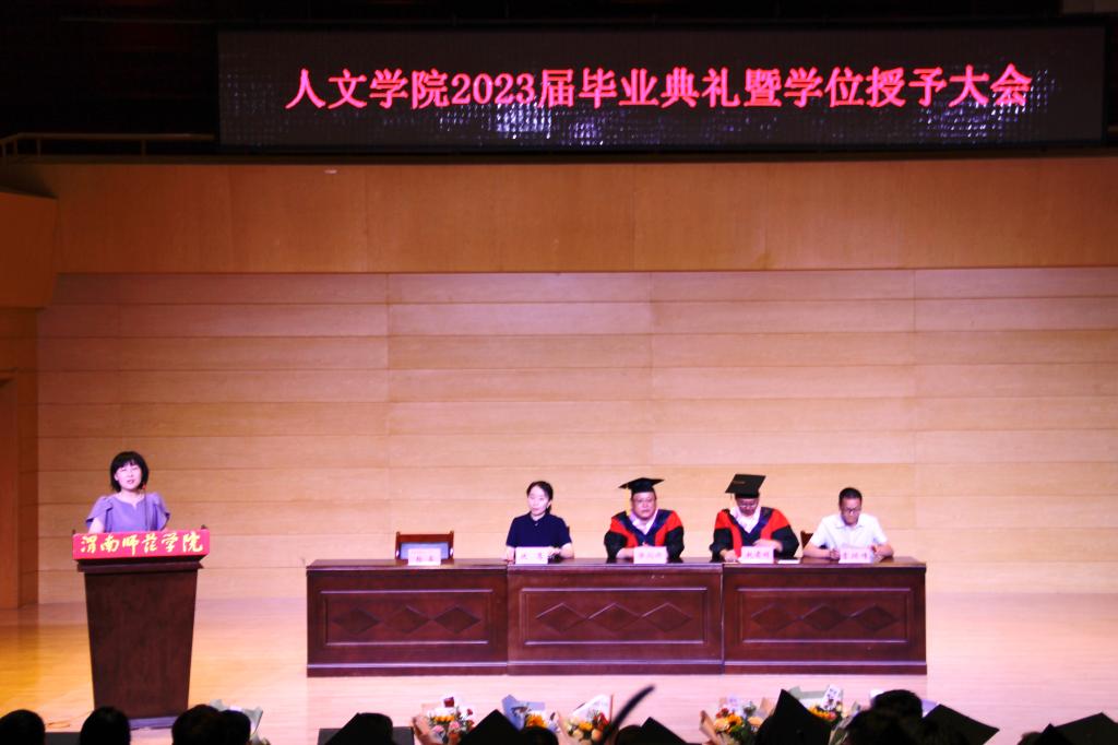 6月25日下午,人文学院在音乐厅举行2023届毕业典礼暨学位授予仪式。该院处科级干部、教师代表、学生家长代表、毕业班辅导员、校友代表、2023届毕业生代表以及在校生代表100余人参加典礼。毕业典礼由该院党总支副书记、副院长张晶主持。