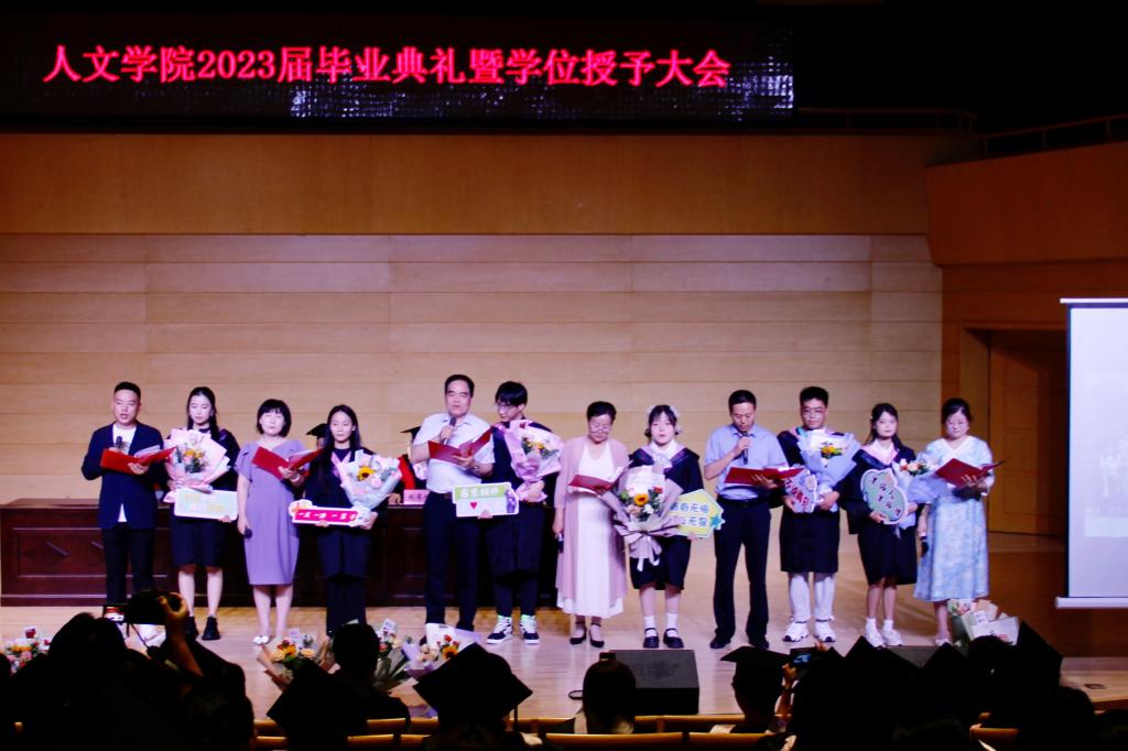 花开满胜夏,毕业致青春。毕业生们轮流走上台,接受学院领导拨穗正冠、颁发学位证书,并合影留念。临别情依依,万语千言也道不尽难舍!祝愿2023届人文学院毕业生前程锦绣、鹏程万里,在各自人生道路上书写精彩篇章!(记者 周雨坤 审核人 李三岗)