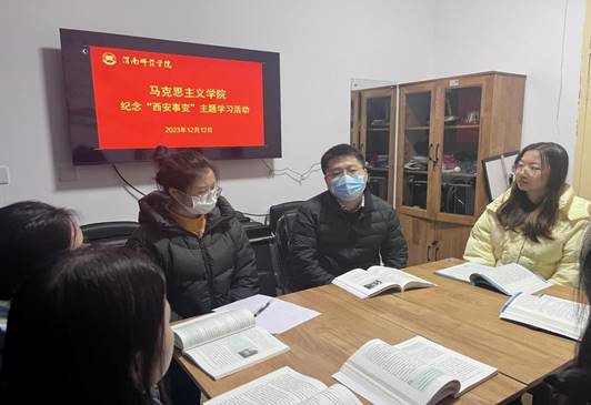 12月12日,马克思主义学院在学生社区党支部党团活动室举办“纪念西安事变”主题学习活动。学院张晨阳老师、部分学生代表参加,活动由辅导员陈晨主持。