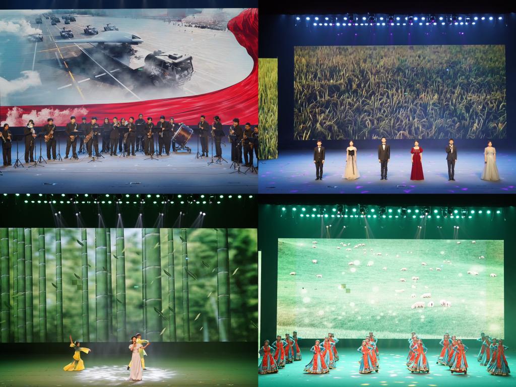 晚会在《鼓动中国》铿锵有力的鼓声中拉开序幕,气势磅礴的鼓点彰显了团结协作、拼搏奋进、自强不息的民族精神。舞蹈《仓颉造字》再现了中华民族文字出现的过程,见证了中华民族文化的进步。古琴与打击乐合奏《离骚》抒发了伟大爱国诗人屈原在政治挫折和流亡困顿中的深情与忧思。舞蹈《瞧:咱老陕人》演绎了陕西人豪爽、朴实、憨楞、勤劳、恋家的性格特征。歌曲《向信仰敬礼》以雄浑激越、青春激昂、大气磅礴的旋律歌颂了渭华起义中革命先辈浴血奋战、不怕牺牲的革命精神。《我爱你,中国》《在希望的田野上》等歌曲,唱响了中国阔步走向富强,走向复兴的新征程。朗诵《写渭南》展现了渭南儿女对这片故土深沉的热爱。晚会上师生们相继表演了歌曲《追梦青春》《新竹词》、古筝《蝴蝶泉边》、舞台剧《垃圾分类》、舞蹈《乌森格日》、合唱《人面桃花相映红》、器乐重奏《唱支山歌给党听》《我和我的祖国》《印记》等节目,为现场观众们带来了精彩纷呈的“文化大餐”。