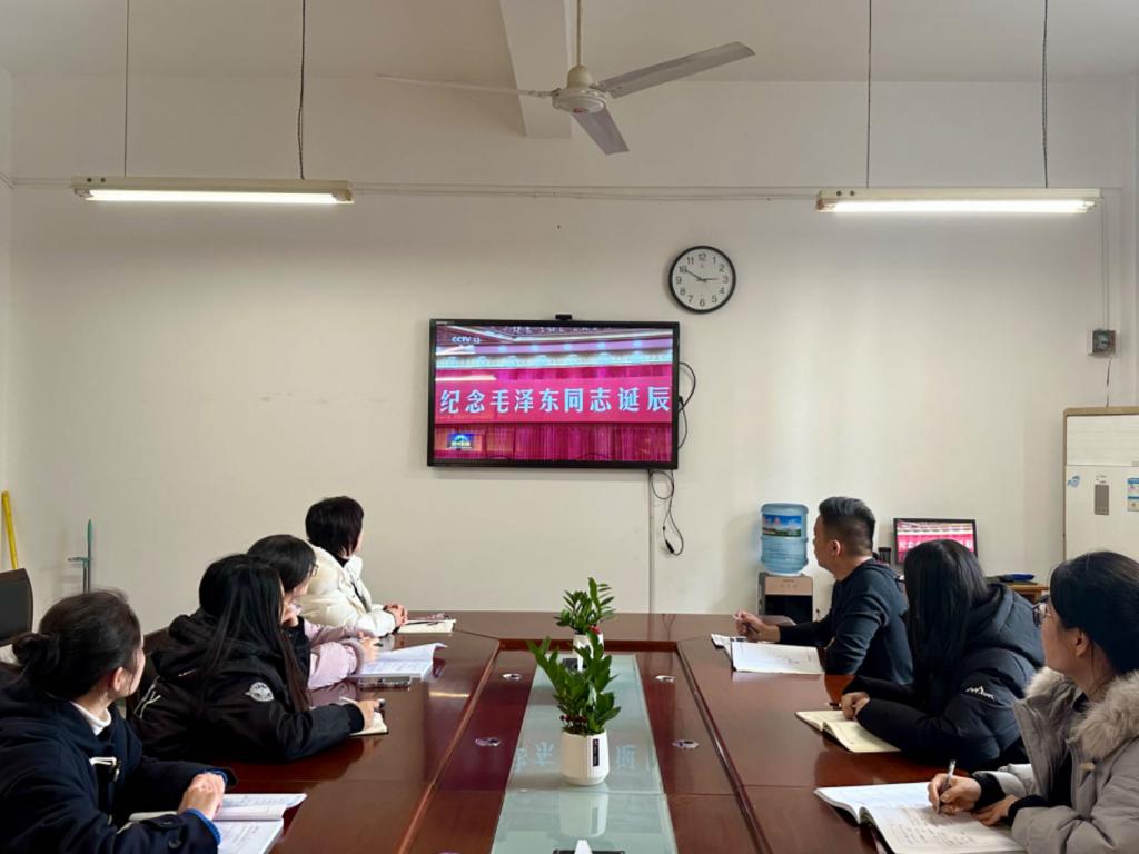 会上,张晶带领全体辅导员回顾了伟大领袖毛泽东的生平和成就,共同学习了纪念毛泽东同志诞辰130周年座谈会上习近平总书记发表的重要讲话,并观看了《纪念毛泽东同志诞辰130周年座谈会》相关新闻视频。
