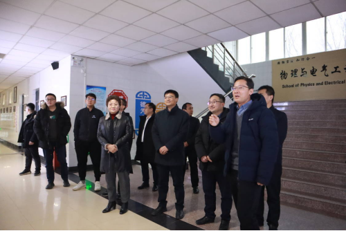 12月28日,西安交通大学数学与统计学院孙建永院长一行莅临我院进行调研交流。此次交流旨在加强两院之间的学术互动,提升教学质量和科研水平。副校长常青林、渭南市科学技术局局长陈改萍以及我院领导班子陪同调研。