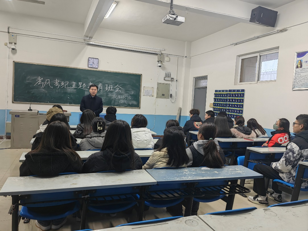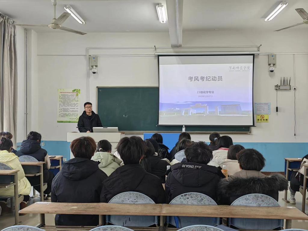 为进一步加强学风建设,严肃考风考纪,化学与材料学院于12月22日至12月29日,对全体学生开展了期末考试考风考纪动员。院长刘展晴、党总支副书记任小婷、副院长朱科、副院长杨珊、全体辅导员和新生班主任参加了本次会议,并安排了入班主题教育班会活动。
