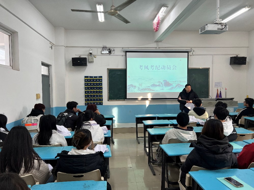 院长刘展晴就期末考试的相关事项做出安排,指出在考前努力复习的同时,同学们应合理安排作息时间,并强调在考试期间要严格遵守考场纪律,做到“诚信考试,杜绝作弊”。最后党总支书记韩城忠叮嘱同学要保持良好的心态,希望每一位同学能够正确的对待考试,沉着冷静,充满信心。