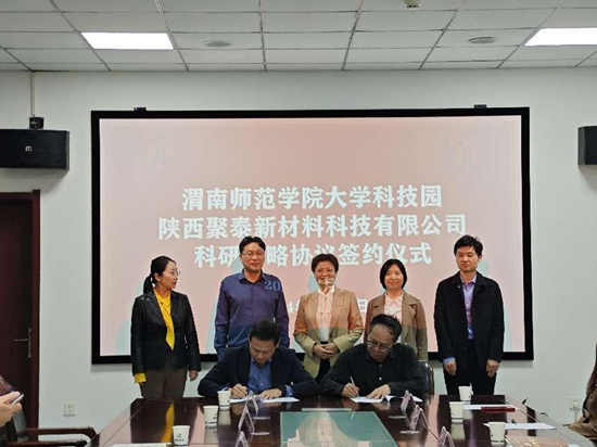 座谈会上,大学科技园与陕西聚泰新材料科技有限公司就各自相关情况进行了深入交流。在陈改萍、王愉涵、裴芬云、赵磊、刘广汉等人的见签下,何泰伯和涂来喜代表双方签订了战略合作框架协议,双方共建“新材料产业技术研发中心”。
