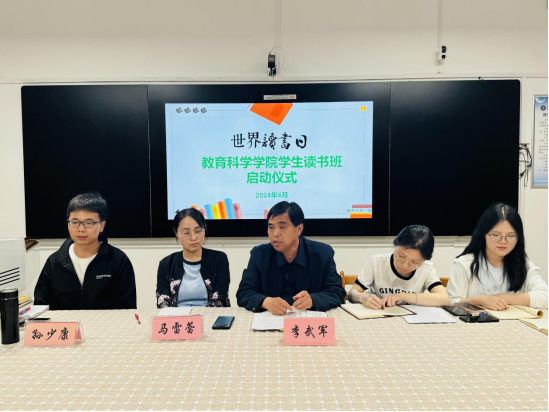 4月23日,教育科学学院举办学生读书班启动仪式暨青年教师孙少康老师读书分享会。教育科学学院党总支副书记马雷蕾,辅导员代表及读书班成员参加本次活动。启动仪式由教育科学学院党总支书记李武军主持,青年教师孙少康主讲。