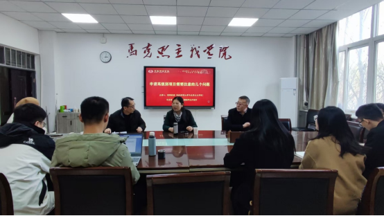 11月26日下午,马克思主义学院邀请陕西师范大学马克思主义学院博士生导师、二级教授张琳作题为《高级别科研项目申报应注意的几个问题》专题讲座。院长张萍、总支副书记肖飞和中青年骨干教师参加。讲座由单剑峰副院长主持。