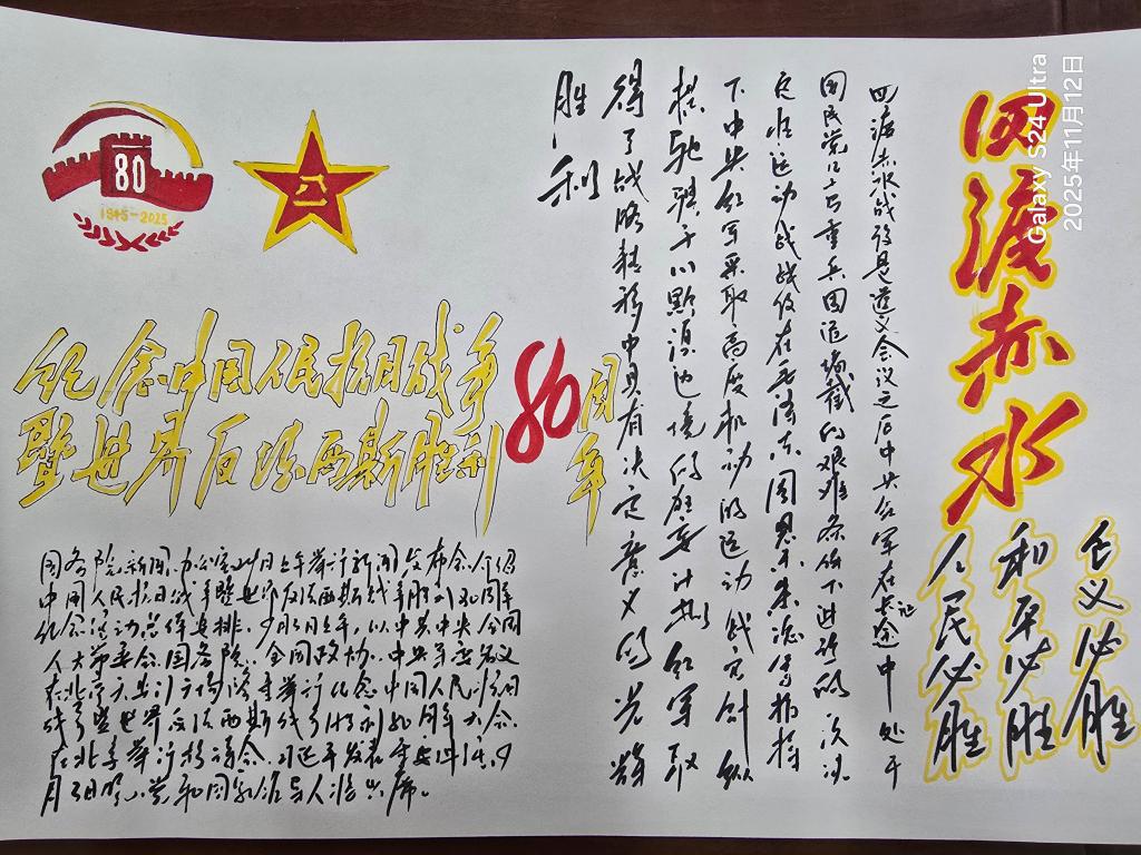 红色心理手抄报活动现场,暖意融融,同学们热情高涨,积极参与创作中。在手抄报创作中,同学们将“红心筑韧性,青春绽芳华”主题元素与心理元素的巧妙融合,作品各具特色。有以“振兴中华”,纪念“中国人民抗日战争暨世界反法西斯胜利80周年”为主题将体育人的坚韧与爱国情感巧妙地结合在一起;有的则以“勿忘国耻”为主旋律,将红色记忆与心理健康知识紧密结合;还有出自学生笔下的“人民日报”“觉醒年代”“新青年”“申报”等增强学生坚韧、毅力、希望等理想信念的报纸,每一张作品都充满了教育的深意和艺术的光彩。