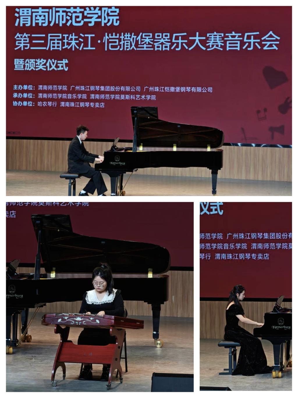11月12日,第三届珠江·恺撒堡器乐大赛音乐会暨颁奖仪式在我校举行。广州珠江钢琴恺撒堡公司党委副书记、总经理李富龙,我校音乐学院党总支书记白锐,音乐学院副院长逯克刚,渭南市哈农琴行总经理李哲,渭南珠江钢琴专卖店经理张卓等出席活动 。