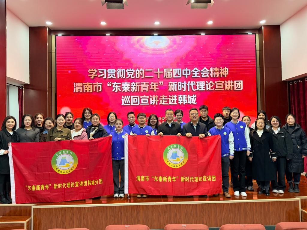 11月19日至27日,学习贯彻党的二十届四中全会精神渭南市“东秦新青年”新时代理论宣讲团深入渭南市11个县(市、区)和渭南高新区、渭南经开区开展巡回宣讲活动。我校雷锋宣讲团成员、外国语学院团委书记伍萌参与宣讲11场,雷锋宣讲团成员、环境与生命科学学院生物科学243班学生李敏莺参与宣讲2场,在本次巡回宣讲活动中获得广泛好评。