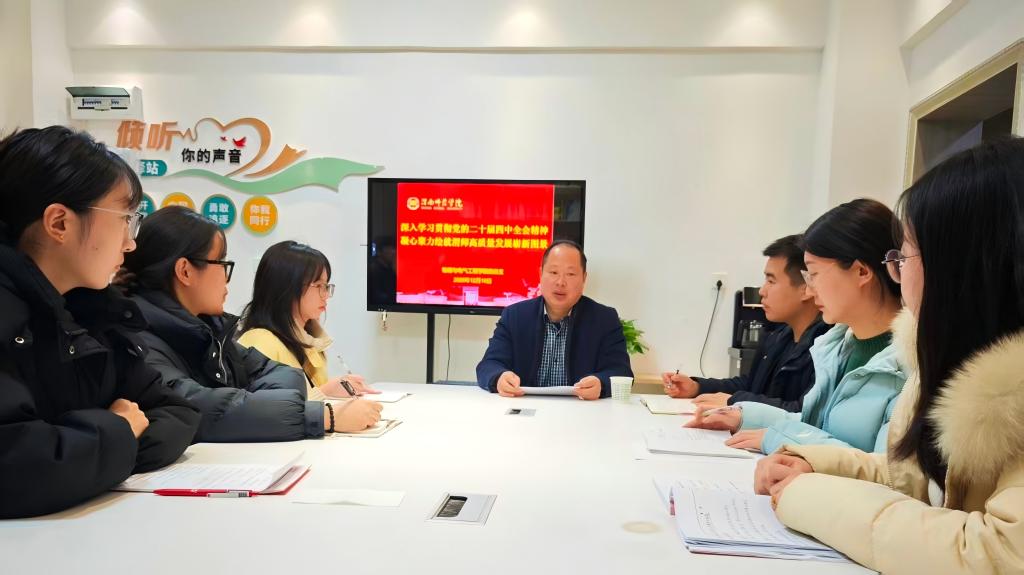 曹强结合学校实际,描绘了学校“十五五”的发展蓝图。学校将聚焦学科优化布局,瞄准战略性新兴产业和未来产业。他特别强调,要将学习贯彻全会精神与科学谋划学校“十五五”事业发展规划紧密结合起来,明确了贯彻落实的切入点和着力点。