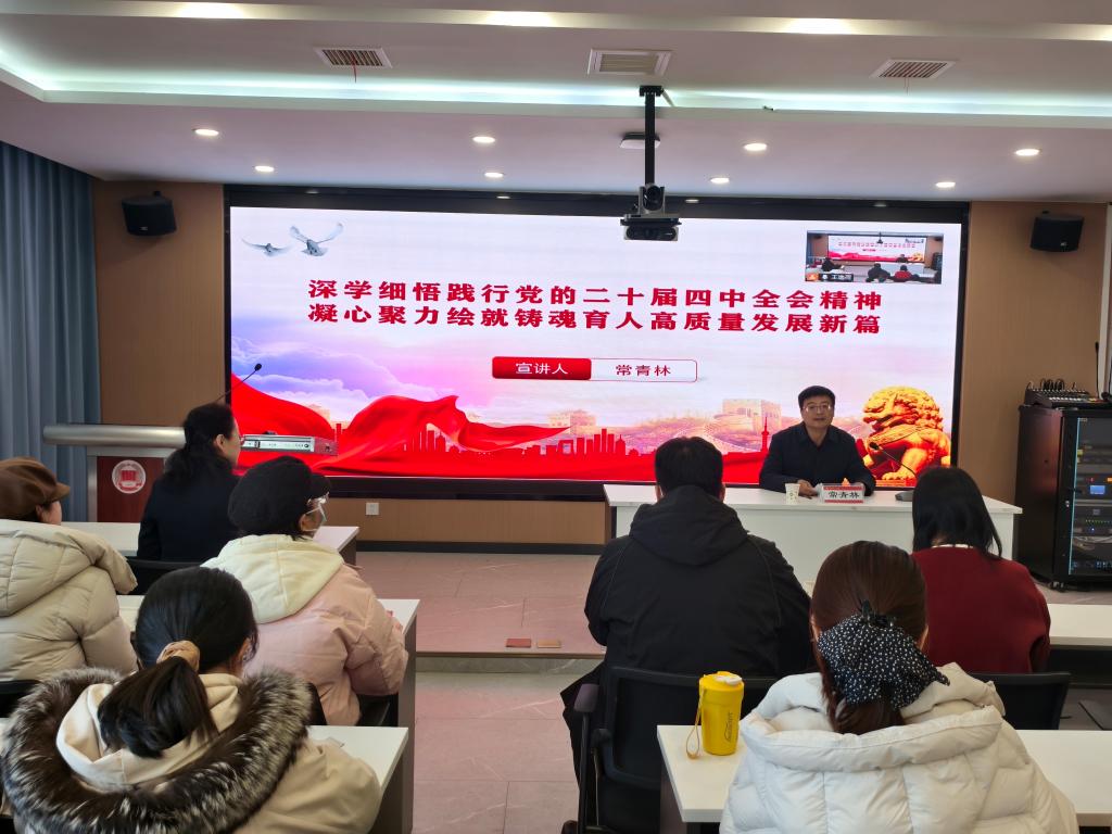 常青林以《深学细悟践行党的二十届四中全会精神 凝心聚力绘就铸魂育人高质量发展新篇》为题,系统阐释了全会的重大意义和精神实质,解读了“十五五”规划建议的重点内容,以及全会关于教育改革发展的新部署新要求,并结合学校实际,提出了扎实做好学校“十四五”收官和“十五五”谋篇的路径建议。报告主题鲜明、逻辑严密、深入浅出,具有很强的政治性、理论性和指导性,为我们深刻理解、准确把握、全面落实全会精神提供了重要辅导。