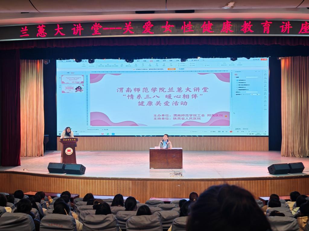 活动当天,一场以“兰蕙大讲堂,关爱女性健康教育”为主题的健康讲座在陶然楼演艺厅温馨启幕,吸引了众多师生的热情参与。讲座中,陕西省人民医院乳腺中心教授、副主任医师韩丕华,以其深厚的专业知识和丰富的临床经验,聚焦乳腺健康这一女性师生普遍关心的话题,结合临床案例深入浅出地科普了女性乳腺疾病的早期发现、治疗、预防相关知识及健康生活理念。着力提升广大师生的健康知识普及率,引导大家要以科学的应对方法、积极的情绪管控来护航健康。