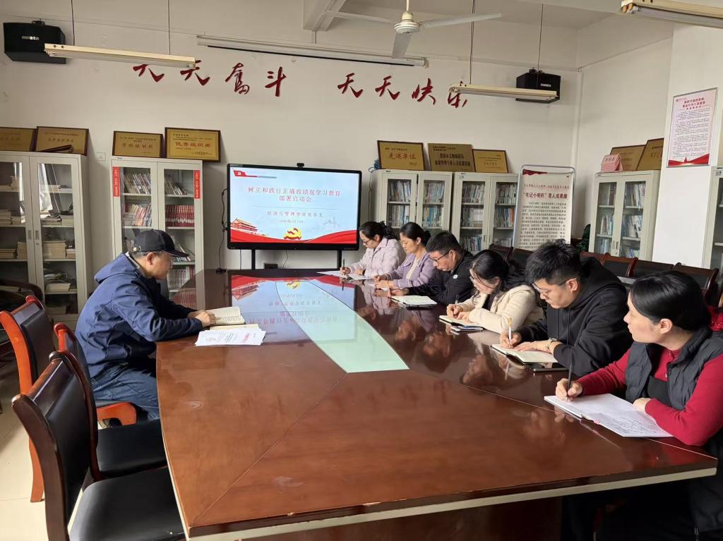 会上,李富荣传达学习贯彻习近平总书记关于树立和践行正确政绩观学习教育的重要讲话和重要指示精神。会议指出,全党开展树立和践行正确政绩观学习教育,是贯彻落实党的二十大和历次全会精神,确保基本实现社会主义现代化取得决定性进展的必然要求;是践行党的根本宗旨,夯实党的执政根基的重要举措;是巩固拓展党内集中学习教育成果,持之以恒推进全面从严治党的有效途径。会议强调,要将学习教育与深入贯彻落实2026年度学校工作会议精神紧密结合,与扎实推进学校“十五五”规划实施、深化改革创新各项工作紧密结合;同时,结合经济与管理学院党的建设、学科科研、教育教学、学生管理等实际情况,以正确政绩观引领干事创业,推动经济与管理学院高质量发展。