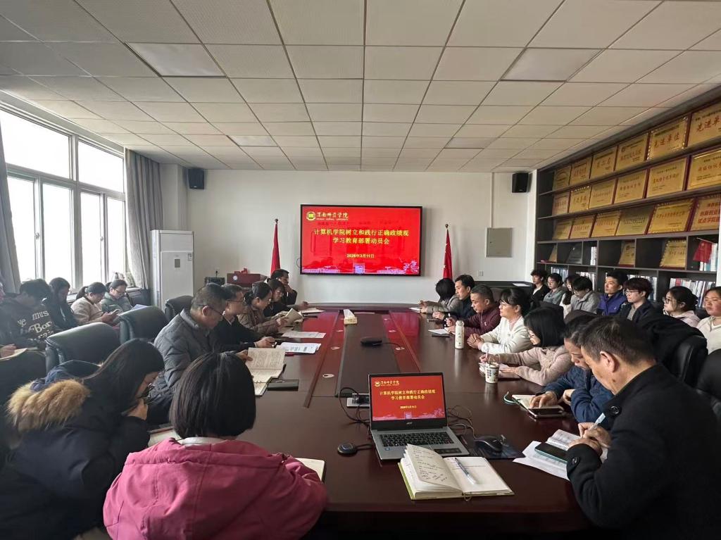 3月11日下午,计算机学院召开树立和践行正确政绩观学习教育安排部署会。学院领导班子成员、全体师生党员参加会议,会议由党总支书记武楠主持。