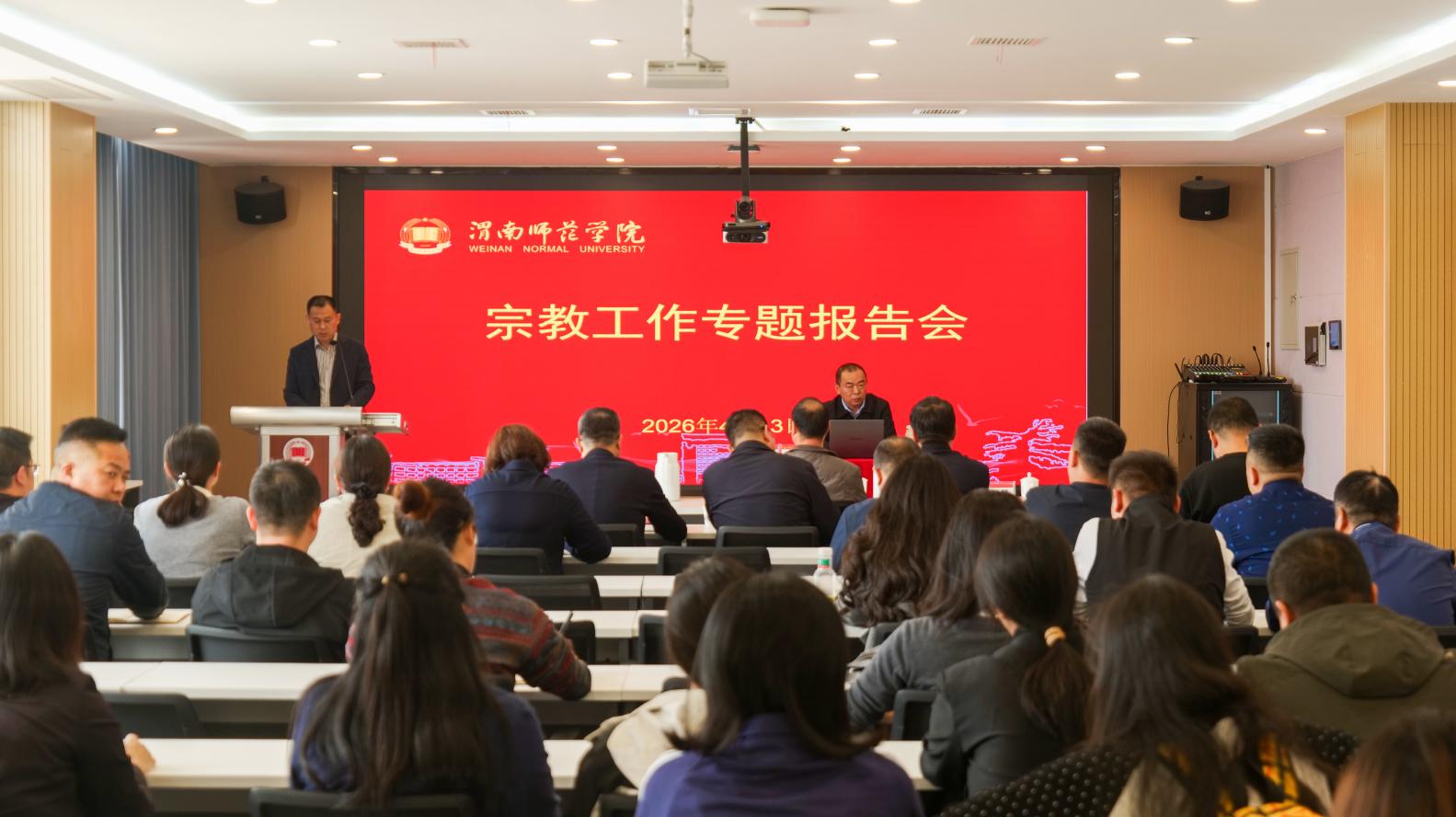 4月13日,学校举办宗教工作专题报告会,陕西省民族宗教事务委员会二级调研员金虎应邀作专题报告,学校党委副书记汪勇出席,报告会由党委委员、统战部部长张勤恳主持。