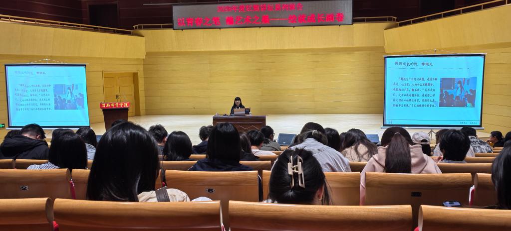 讲座中,郗莉结合自身数十年一线教育与管理经验,围绕“青春成长、艺术育人、教育初心”三大核心,通过鲜活案例与生动讲述,阐释艺术教育对青年品格塑造、素养提升的重要价值,引导师生以青春为笔、以艺术为墨,在成长路上坚守理想、深耕专业、涵养情怀。她的分享既有教育理念的高度,又有实践落地的温度,引发在场师生的强烈共鸣。
